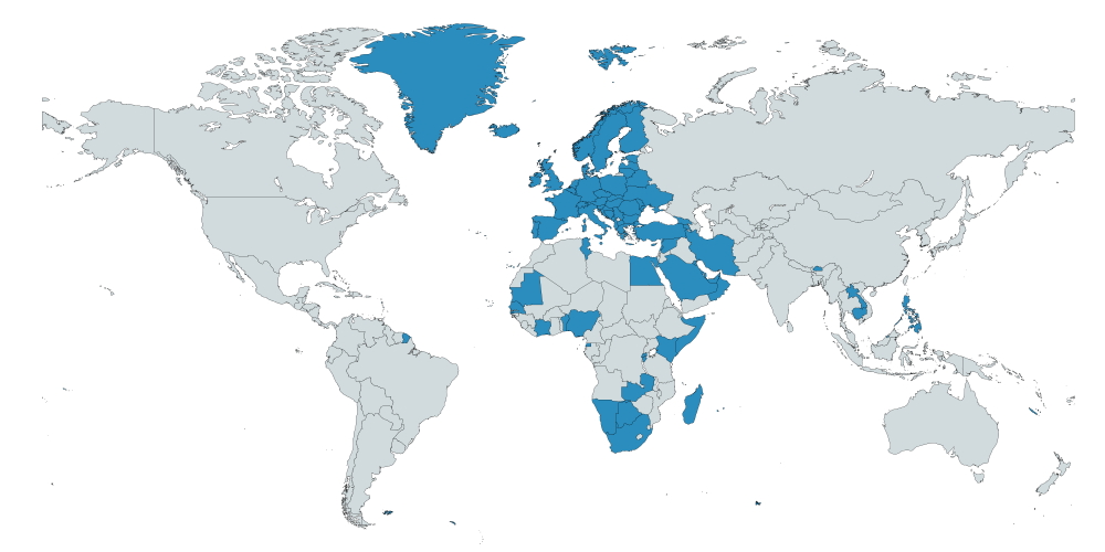 - Armenia, Bahrain, Bhutan, Brunei Darussalam, Cambodia, Iran, Kuwait, Lao People’s Democratic Republic, Lebanon, Oman, Philippines, Qatar, Saudi Arabia, Syria, Turkey, United Arab Emirates