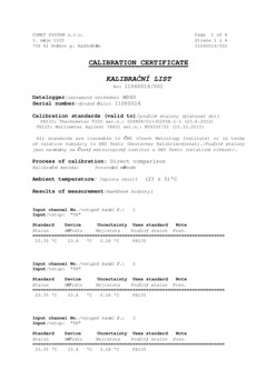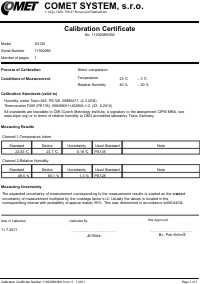 Les Produits COMET comprennent des certificats d'étalonnage traçables. Le certificat d'étalonnage est inclus dans le prix du produit. Le laboratoire de Métrologie COMET est certifié en tant que partie du système de gestion de la qualité selon la norme ISO 9001: 2000.
